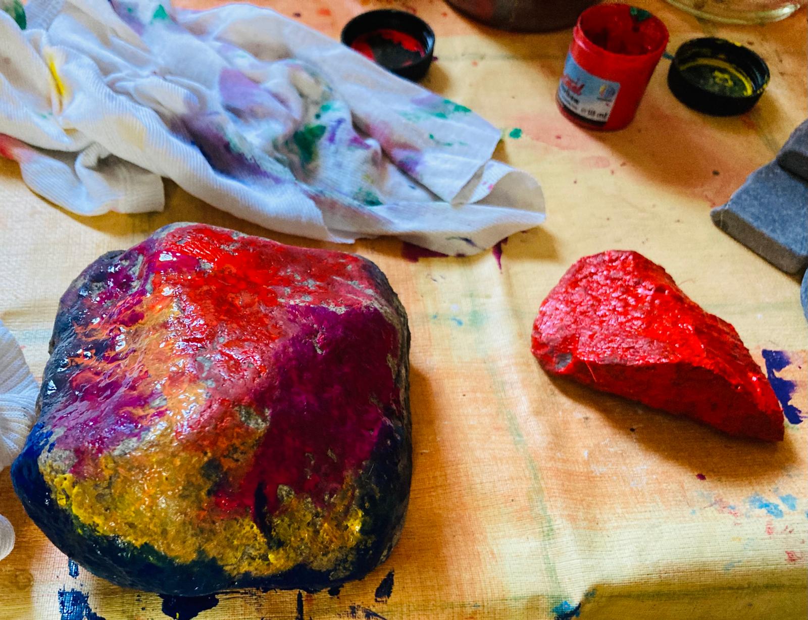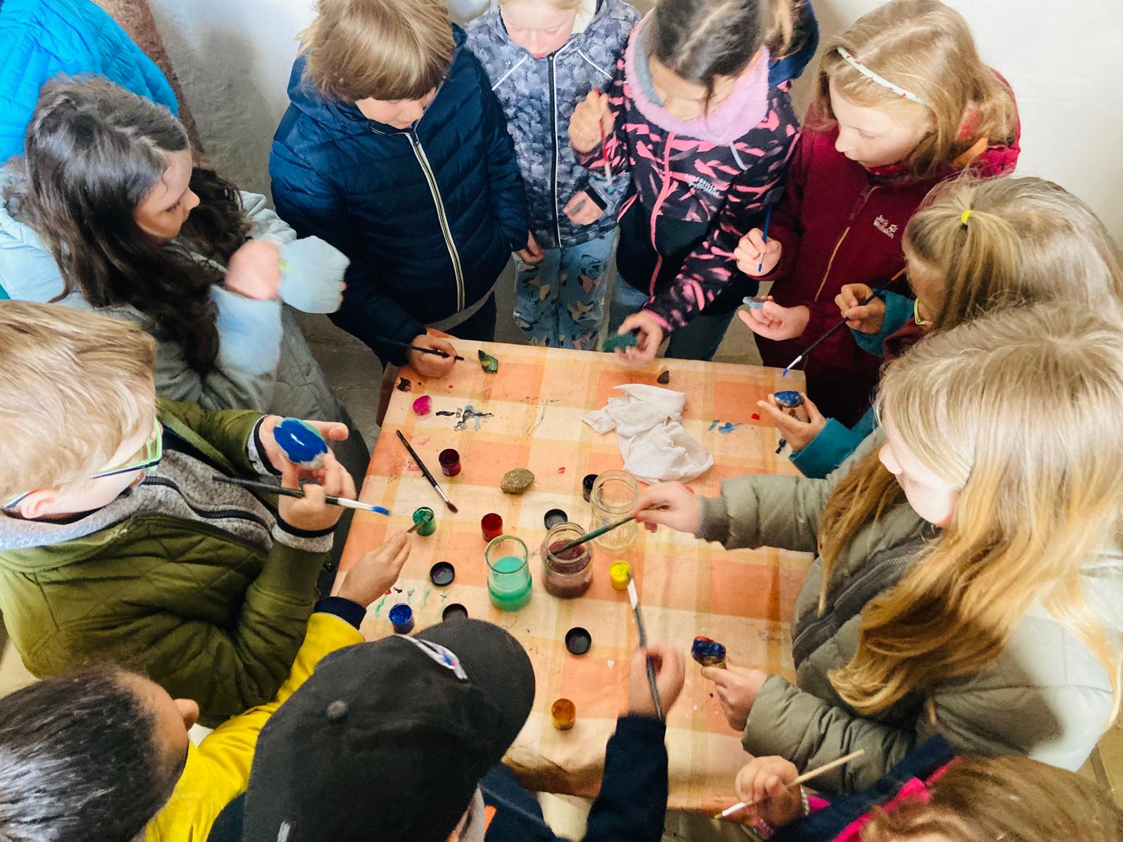 Graue Steine der Trauer wurden bunt. Die Kinder malten eifrig und erlebten auf diese Weise symbolisch etwas davon, wie es ist, wenn Hoffnung allmählich wächst.