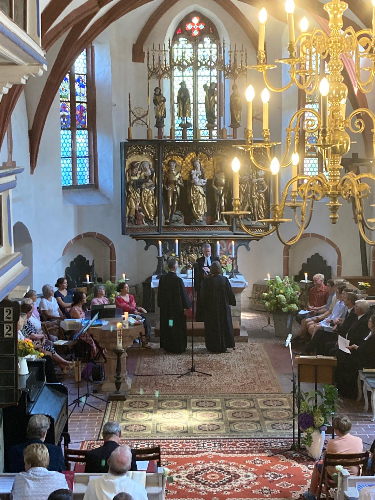 Im Anschluss an den Gottesdienst fand ein Gespräch mit interessierten Gemeindegliedern und Mitgliedern der Kirchenvorstände der Schwesterkirchgemeinden statt. Nun besteht die berechtigte Hoffnung, dass Pfarrer Benedict Schubert bald als Pfarrer bei uns beginnen kann.
